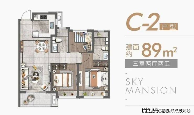 上海宝山天铂建面约83~89㎡朗阔三居全能户型,动静分离,静谧舒适,每1cm的考究,都映射着每一个人居的诉求。