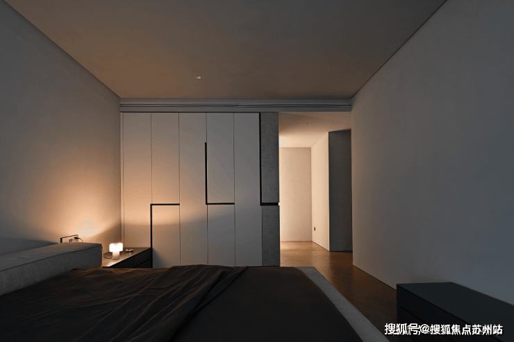 从客厅到卧室,光线随之变暗,宁静的氛围越发的浓烈了。卧室内的灯光柔和且安静,为业主提供了一处完美的休憩场所。