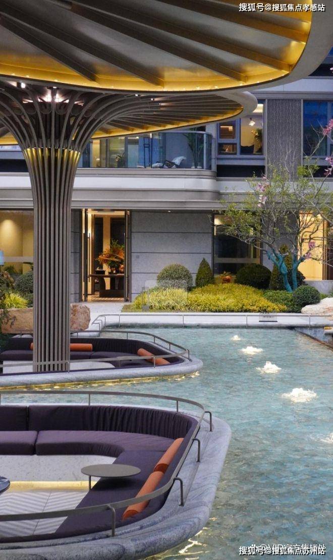 因为其独特的造型,不仅仅是廊架,仿佛也是小区内的艺术品装置,依傍着叠水,有一种漂浮岛屿的感觉国贸海屿佘山售楼处热线:400-867-3567☎️☎️✅✅✅《官方认证》
