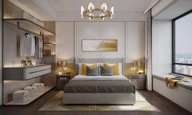 双南向卧室皆带飘窗,主卧大套房设计,带独立卫生间和衣帽间,让两代人都可以拥有专属的空间;