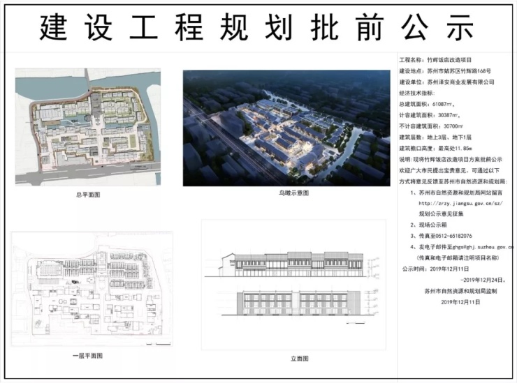 2013年竹辉饭店关门 许多苏州人恋恋不舍 现在,属于它的新规划公示了! ↓ 老饭店迎来新生!它将华丽变身为… 在2016年,市政府官网 就曾公布过 竹辉饭店地块项目备案通知书 明确未来的竹辉饭店地块 将形成集酒店、商业、休闲娱乐等功能 于一体的带有苏州文化元素的商业项目 根据较新的规划公示,竹辉饭