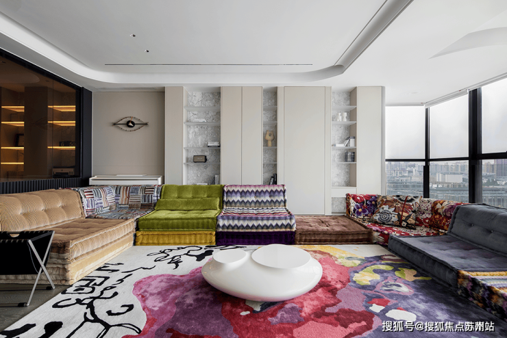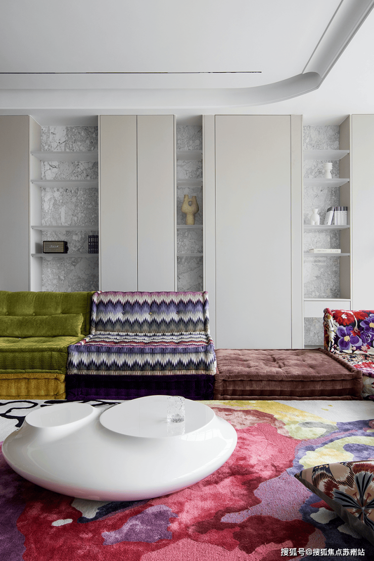 充分迎合主人需求,运用大量圆状设计元素结合柔化色彩,巧妙的把弧形和圆状进行互相对撞,通过色调渲染,打造一片沉浸式灵动感。
