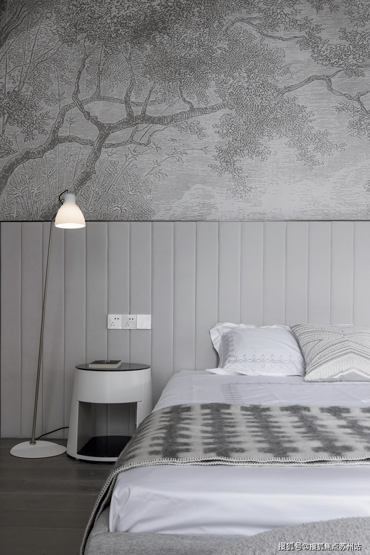 主卧室运用素色当主题,巧妙进行设计层面的良好衔接。在梳妆台和墙体标准融合下,构造更静谧祥和的多功能空间。