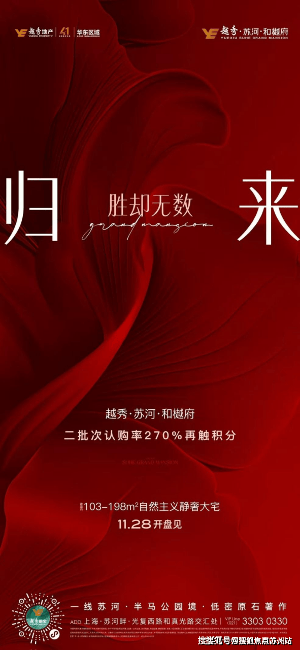 热望归来,胜却无数。虽寒冬凛冽,越秀·苏河·和樾府以二开二罄的热销佳绩,点燃了全球苏河之畔。继首开售罄之后,二批次推出的103㎡-198㎡自然主义奢宅备受期待,众望归来时刻,二批次认购率270%再触积分,再次续写全球苏河的热销奇绩!