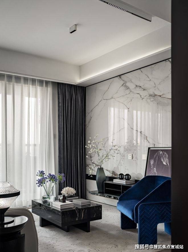 同时, 社区内部景观打造了大面积的叠级水景,搭配普拉达绿大理石和浪淘沙石材,呈现整体空间的隐奢基调。