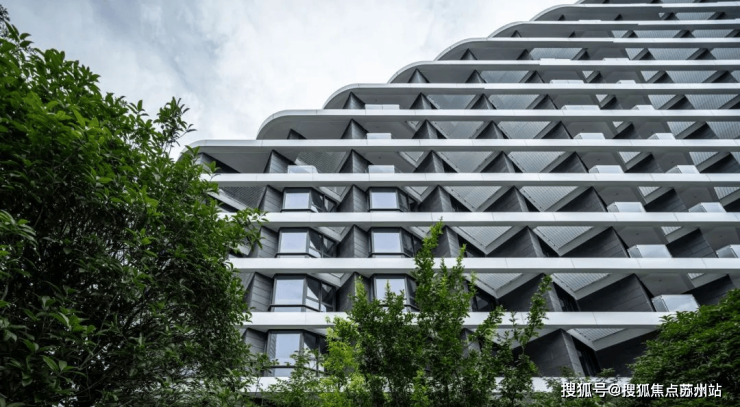 层间设置形态柔和的水平向飘带,与黄浦江流动的水体相呼应,勾勒建筑轮廓,串联立面转折、观景阳台等,消隐了传统住宅前后错动的复杂轮廓,强化建筑的整体性。