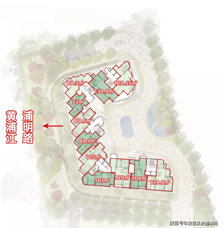 项目建筑限高60米,考虑陆家嘴特殊区位和江景,采取了偏围合式的“C”字布局;开口向东,建筑总高52米。