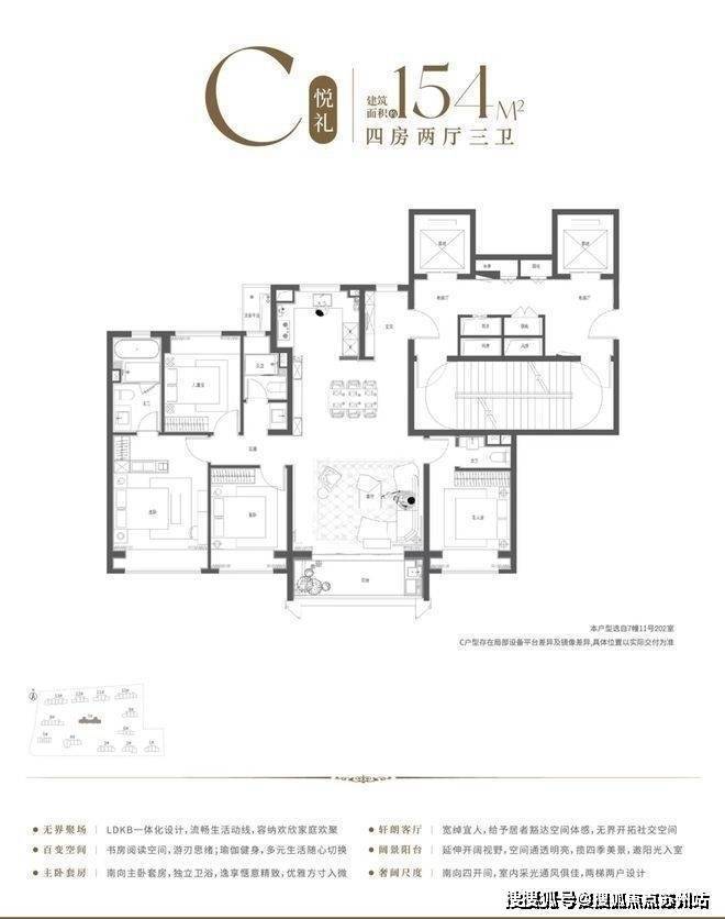 全景面宽+无界通厅+高附加值+收纳天花板,130㎡的面积直逼140㎡的尺度感!