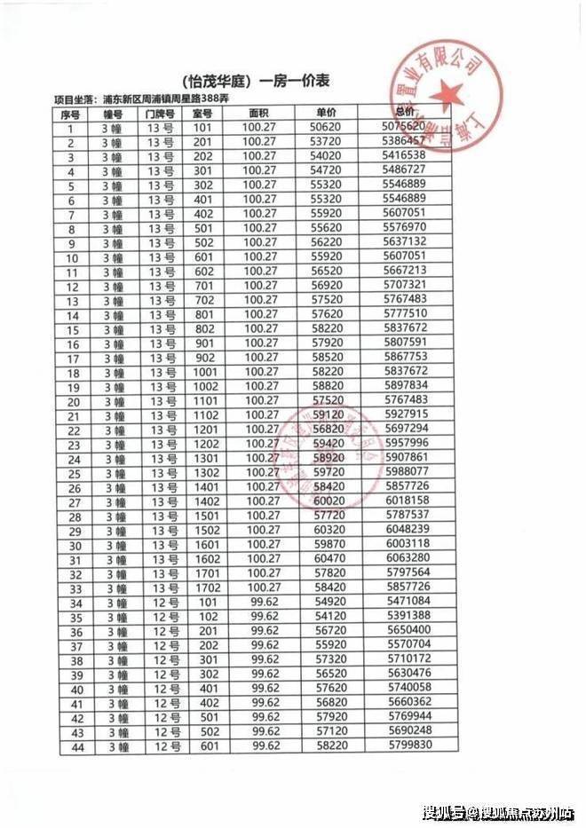 华发观澜半岛一房一价表▼