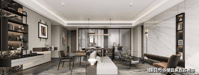 售楼处设计源自伦敦与上海半岛酒店的优雅复古,将现代极简主义美学运用到极致。沙盘区景墙将取材Celine御用石材宝格丽黑大理石,以永不过时的摩登气息,点睛空间的奢华精致。