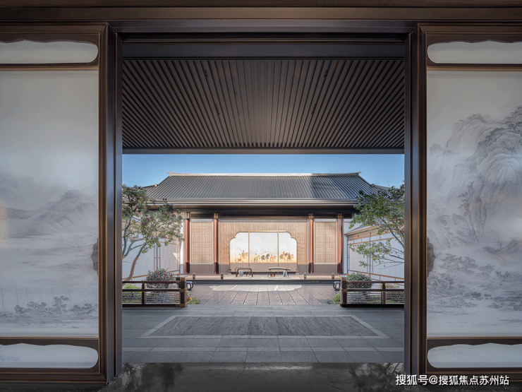 大门开启,一幅诗意的辋川画卷与卷外松翠交相辉映,虚与实中,恍若隔世。