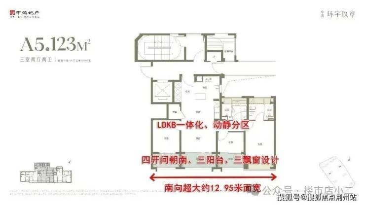 中海环宇玖章售楼处电话:400-8228-664【预约看房热线】约123㎡ A1户型:这个户型像一枚“空间炸弹”,震动了市场。它做到了约12.95米的南向面宽,什么概念?这甚至超过了真如板块一些200㎡以上次新房的面宽表现。