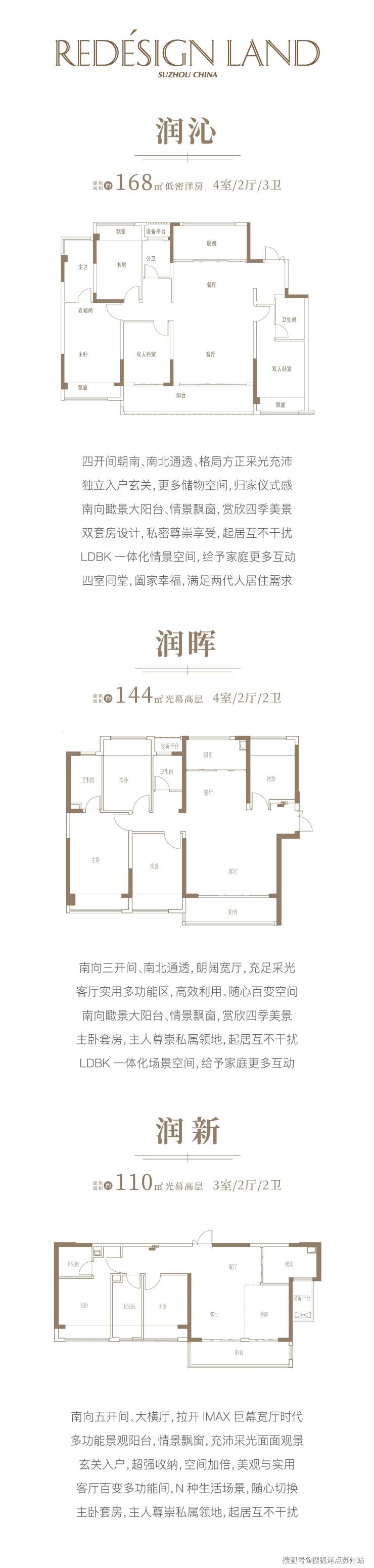 择址平江新城,姑苏新中心,润宸借鉴国际社区设计理念,规划12栋住宅,其中8栋约168㎡低密洋房、4栋约110㎡/144㎡光幕高层,凭借润系高阶作品对国际新锐生活的理解,以镜面美学立面、苏韵园林景观、万象服务产品服务力、润心会所文化、匠心精装产品,打造与平江共赴新的国际轻奢改善住区