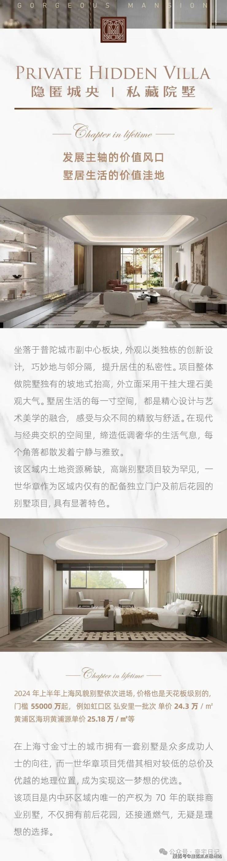 相信爱老洋房的你,一定有“别墅”情结。本篇主角『一世华章』,为内中环板块唯一独立门牌院墅,15套联排,不限购,不限贷,70年产权!城市副中心上的绝版居住洋房资源,除居住作用外,更兼收藏价值。