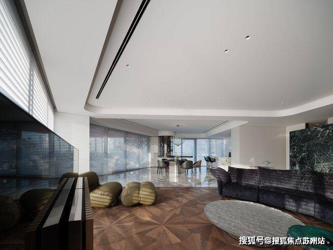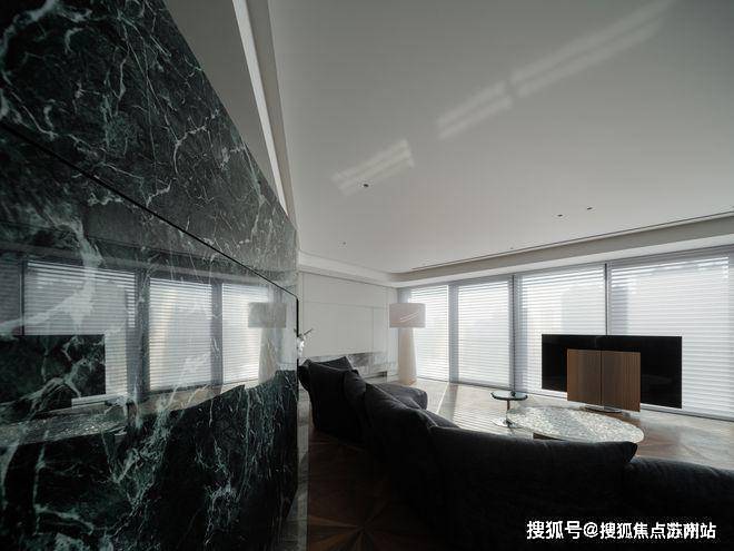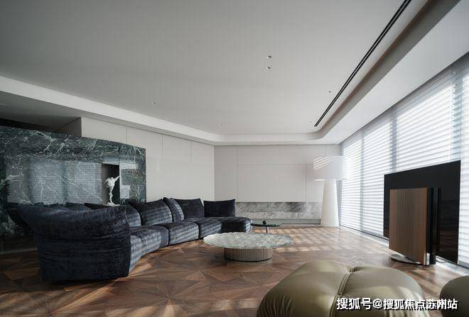 静安翡丽铂悦官方电话➡:400-8123-664(预约看房电话)跳脱出固有的客厅设计,让超宽观景落地窗成为电视的天然背景墙,将城市景观置于落地窗内:白天是与秒流动的自然光线,夜晚则是一览无余的现代繁华。