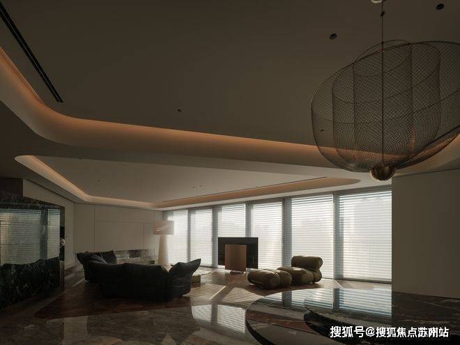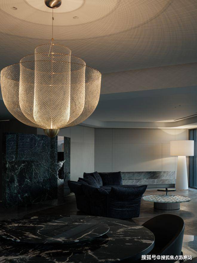 静安翡丽铂悦官方电话➡:400-8123-664(预约看房电话)借以Moooi的枝形吊灯向整个开放区域投放出细腻的美感,即便是金属质地却丝毫没有硬朗的质感,光线通过铁丝网散射,营造出温馨而梦幻的氛围。