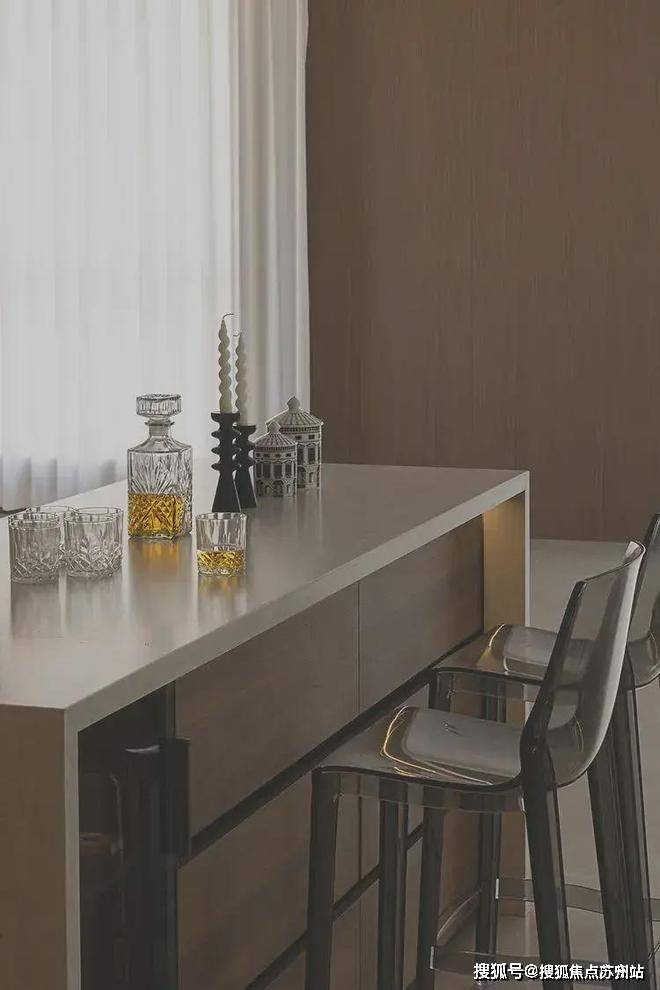 中岛设计既独立又能和其他空间联动起来,变成一个更大的休闲区、社交场,可开可合、可静可动,让空间有了更多的可能性。