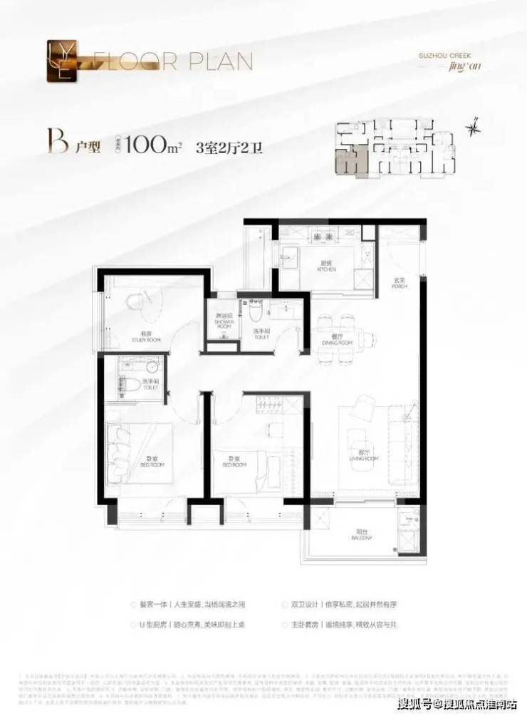 建筑面积约100㎡3房B&C户型:3房功能性符合市场主流需求,三开间朝南的布局保证充足光照。动静分离的设计让安静与活力同在。主卧套房设计,舒适度和私密性双爆表!悦97售楼处营销中心:400-8828-814悦97售楼处电话/地址☎:400-882-8814(开发商热线)