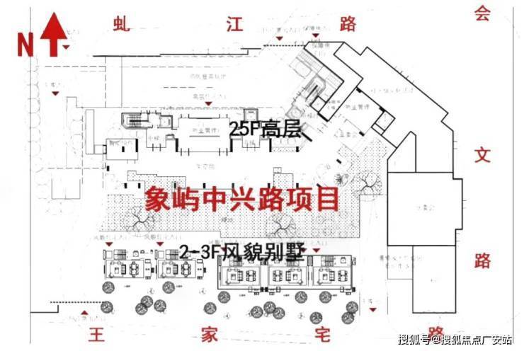 根据规划,项目拟建高层公寓+风貌合院别墅产品.高层为一栋25层高建筑,5-25层为商品房,一层6户,共126套,均为建面约100㎡小三房,该项目综合容积率2.67.