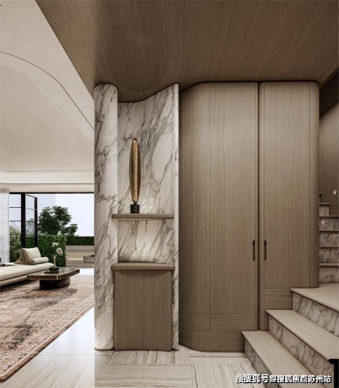玄关S墙设计,同样包含MAX巨量收纳;创新性采用了钢琴键收纳,600万级的刚需项目中能享受大几千万的豪宅配置;