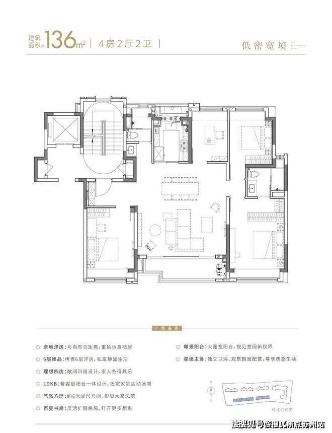 建面约136㎡6层洋房纯粹的亲地性和高得房率,既能满足三代同堂居住需求,也能保障私密性和居住体验感的提升;