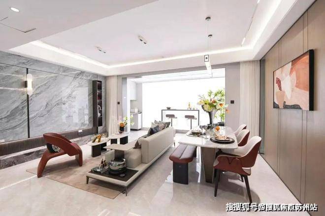 建面约99㎡滨水高层户型方正,功能性与尺度感兼得,在保证采光的同时,呈现开阔的空间场景。