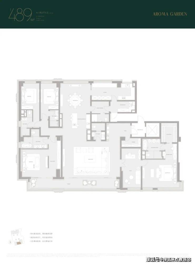 露香园·天誉约489㎡的整体面宽是4个产品中最宽的,达到了约26米,比另外三个产品多了4米左右,相当于多出了一个开间,另外三个指标性项目互有来回,包含玄关空间尺度、厨房空间尺度、次卧面积尺度,整体是一个以大面宽为核心竞争力,较为均衡的产品。