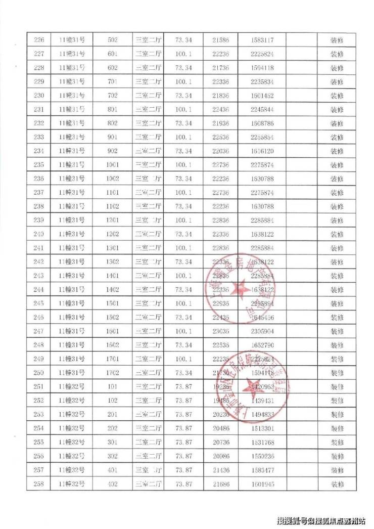 一房一价表如下: