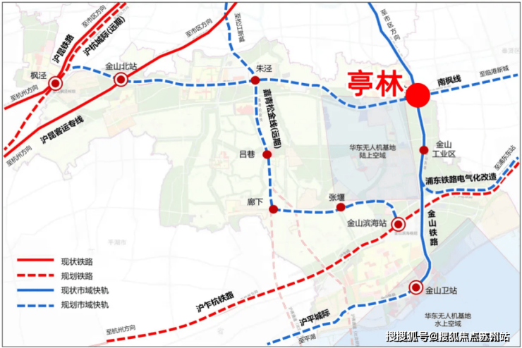以亭林综合发展型城镇圈为抓手,统筹亭林镇、金山工业区、松江区叶榭镇的空间资