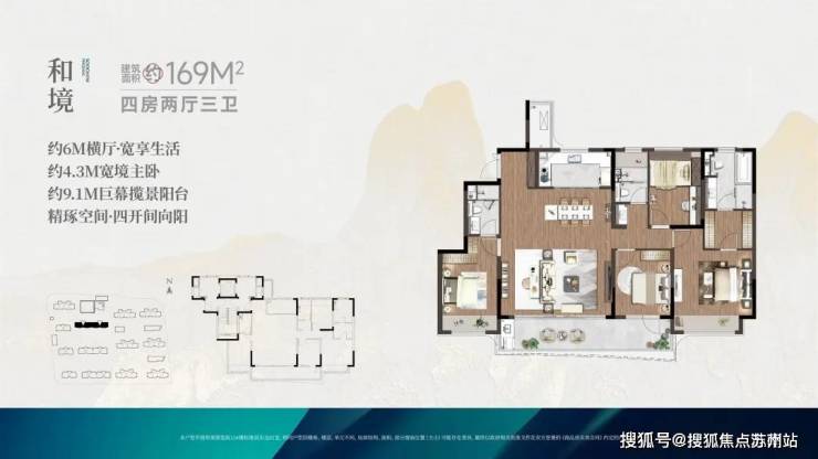 ✅6栋9-11F洋房,143㎡户型(四房两卫)、建筑面积169㎡户型(四房三卫);