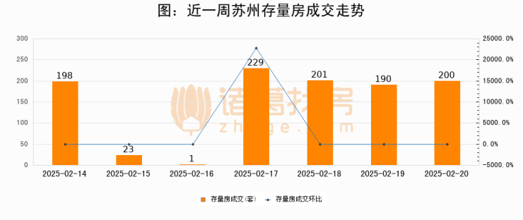 从存量房来看,2025年02月20日苏州存量房单日成交200套,比昨日增加10套,环比上涨5.3%。从近一周存量房成交来看,苏州存量房日均成交套数为148套,02月20日单日成交200套,高于近一周平均水平35.1%。