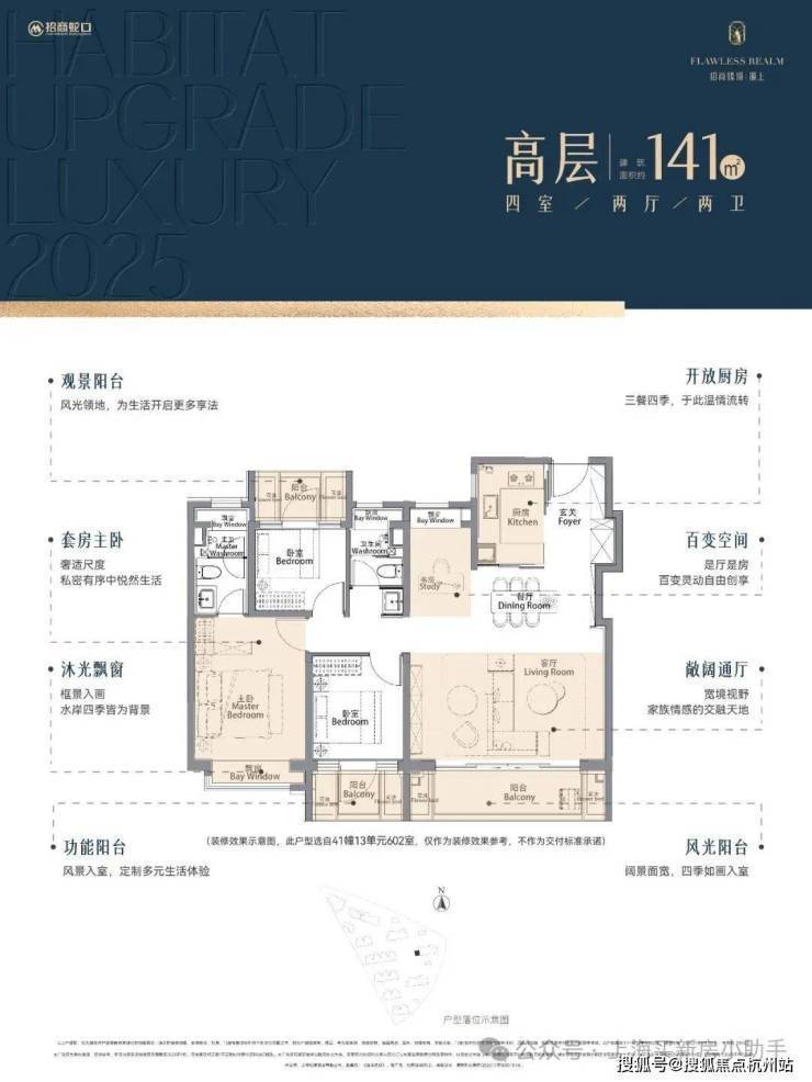 √中叠约146㎡四房大平层空中花园峯范场餐厨客书房无界贯通,形成超级家庭交互场域南向四开间引光入室,全景飘窗框画水岸四季套房主卧,舒享自在的私人场域