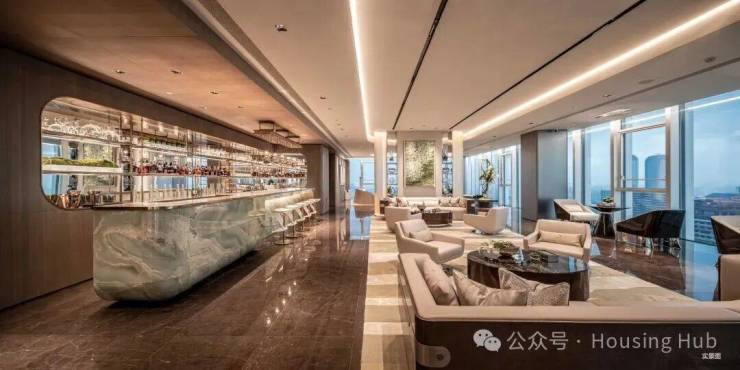 【意趣丰盈的会所】项目会所位于51层,以高定「云端六境」,聚“社交、会晤、私宴”等复合型功能,呈现惬意天际生活空间。