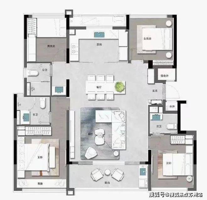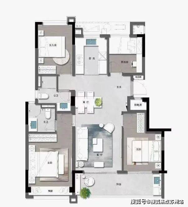 如此阔绰的空间,完全可以实现多孩家庭、三代同堂,甚至不用再考虑置换。