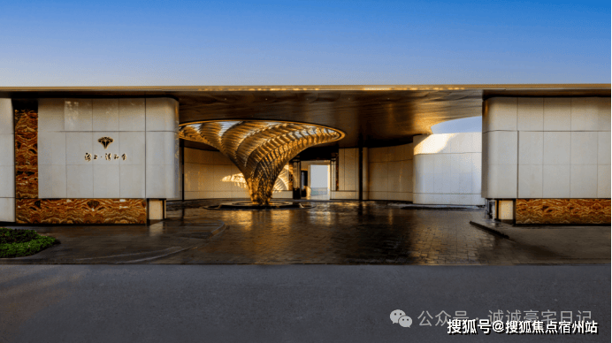 门庭延街的外立面,以精工定制弧形米色石材为主调,镶嵌典藏级老虎玉大理石,点缀古铜色现代海派艺术感灯器,整体呈现出百年海派的贵雅气质.