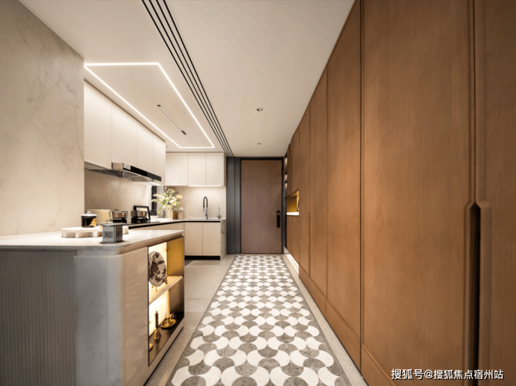 上海徐汇海上清和玺售楼处电话:400-8123-664【预约看房热线】海上清和玺售楼处电话:4008123664【售楼处电话/地址】海上清和玺售楼处电话:400-812-3664【开发商认证】开门采用完美系列水波纹玻璃加上金属造型边框的玻璃移门,时尚又大气.顶部配置线性凉霸、LED嵌入式回形灯带和筒灯,烹饪时光也变得无比美妙.