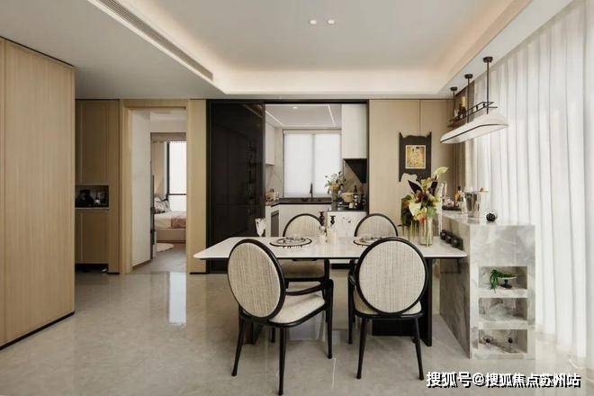 开放式的厨房,还预留了 岛台,延伸了U型台面,让烹饪中心演变为社交场域,不仅颜值高,互动性也很强。
