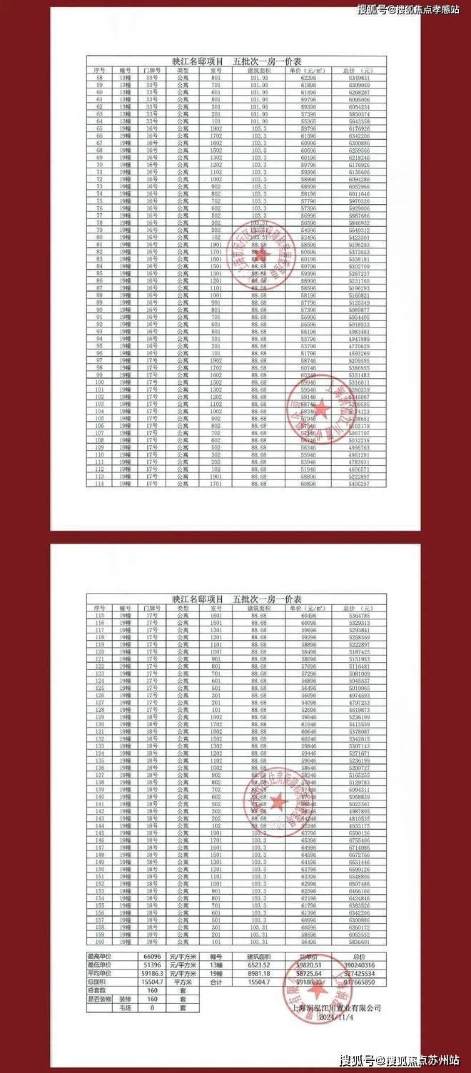 华润映江润府房一价表▼