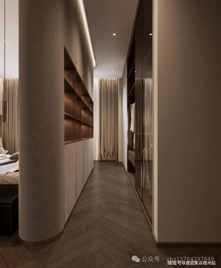 •整墙玻璃衣帽间(爱马仕专属格位),收纳品味与锋芒.