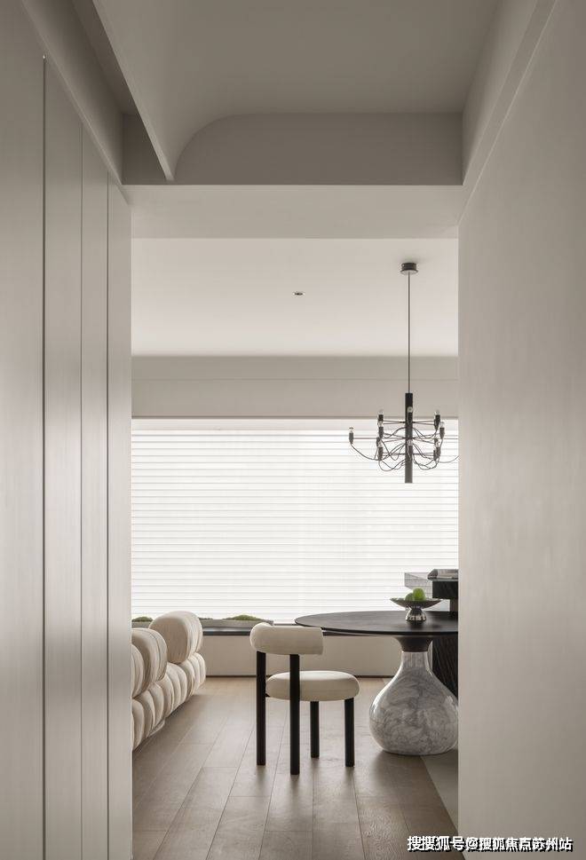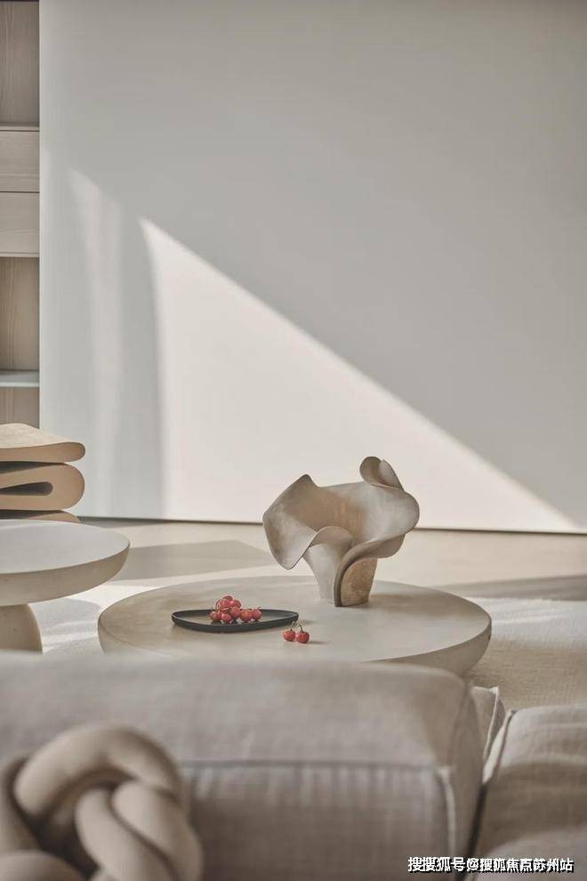凭借温柔的弧形,优化了原始梁柱的琐碎感和锐利感,与木元素或纯色调糅合,让光影自由地流动。以玫瑰为灵感创作的单椅装点一隅,贵雅无比,茶几以叠层魅力与之对话,达成酝酿风雅的共识。