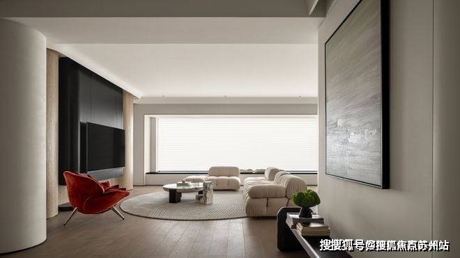 空间内随处可见的留白是设计赋予居住者自由思考的维度,同时也是空间灵动感的源泉,浅色地毯、L型沙发、皮革躺椅让家充盈且实用了起来。