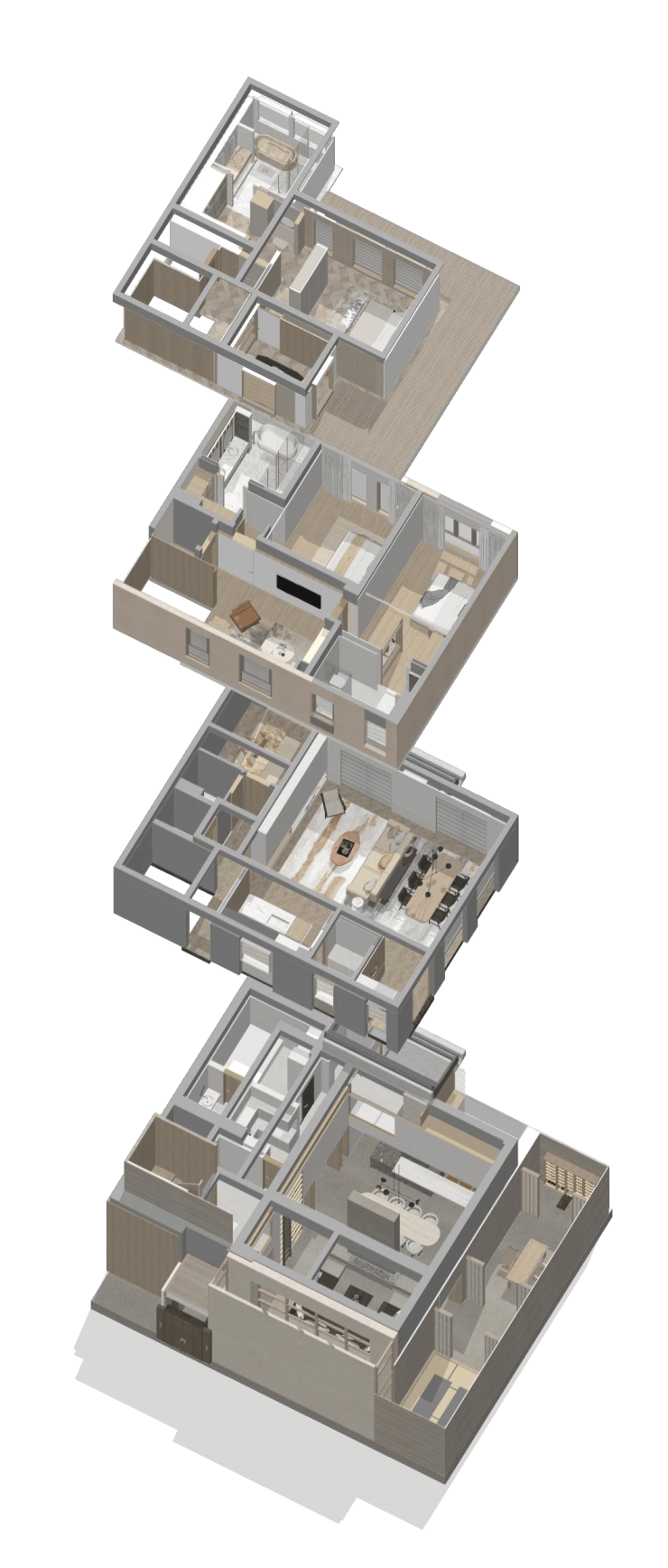 前滩润璟建面约277-298㎡联体别墅&独立别墅产品,以五层阔尺境界,充分利用空间分层优势,去承载不同生活方式的使用功能,能够做到相互连接,又互不打造,使每个居者生活自由度均能得以兼顾,实现从容有度的全龄生活主场。