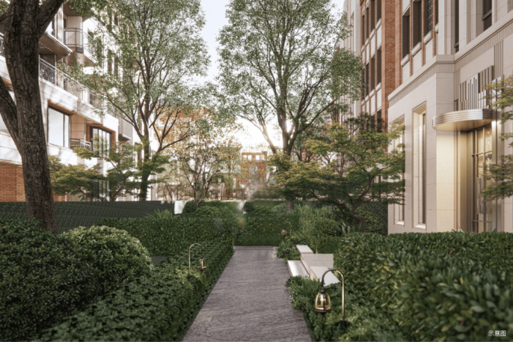 园林景观,以复刻上海名园的造园手法,在自然中寻得海派的精神共鸣。用微法式园林铺陈整座住区,并放大街区的宜人生活尺度,以小尺度精致化手法形成特色海派花园,打造纯粹低密的墅区。