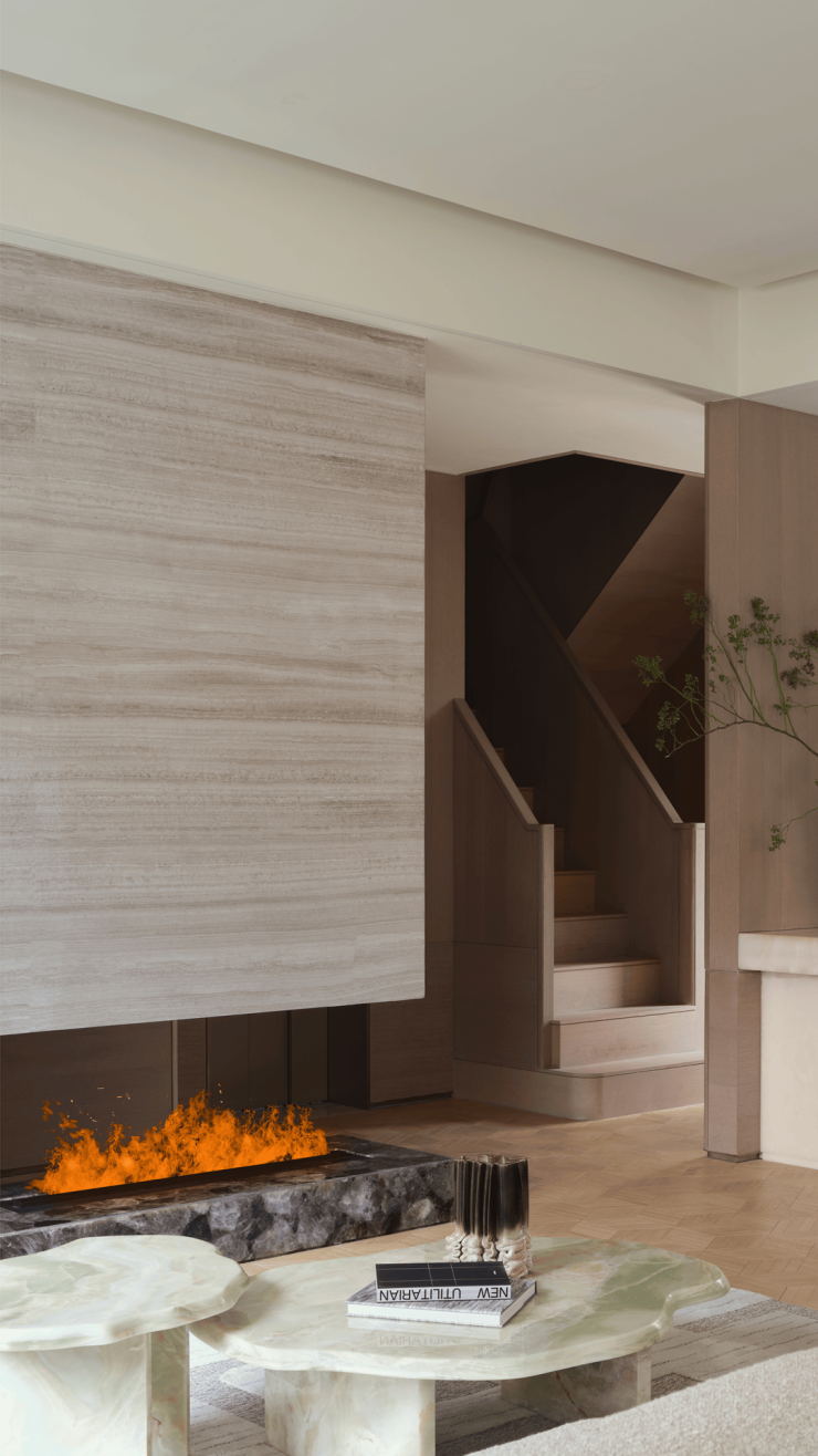 有天有地的生活方式,亲近自然,是终极居所非常重要的特性。就是通过园林与露台空间,展现出的自然属性。主庭院作为建筑的外延空间,其最主要的功能就是融合人与自然、建筑之间的关系。又以超大面宽的客厅连接庭院,引景入室,融物于景,情景交融,为居者带来提升生活的情绪价值。