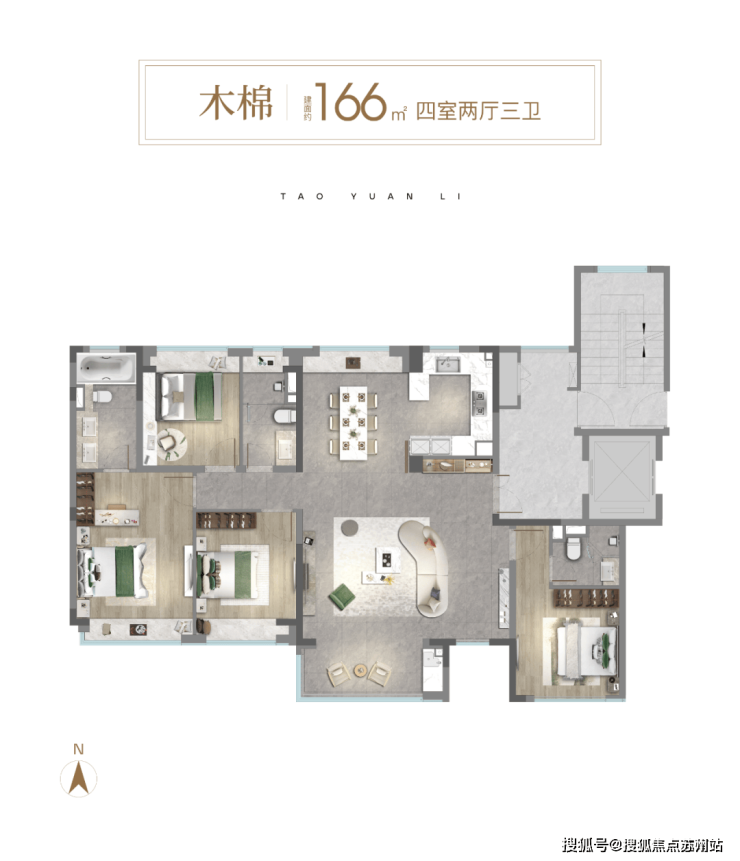 南地块168套,户型为:建筑面积约106㎡、166㎡