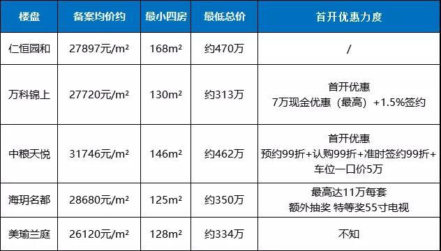 统计了一下几个新盘首开优惠力度,其实都不小,都能达到优惠约10万每套!