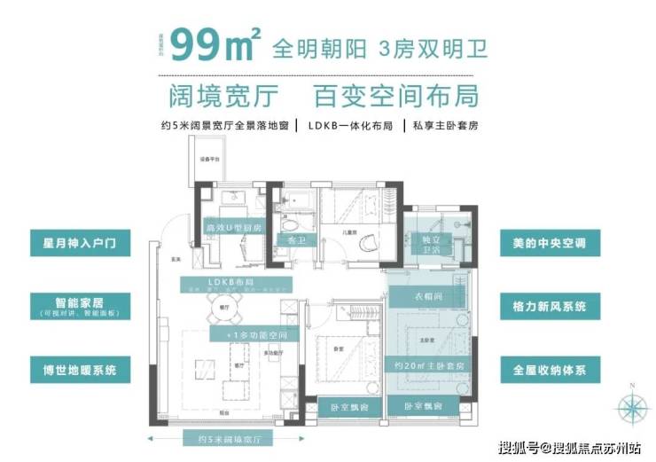 文泽华府建面约99㎡3房2卫设计,功能性颇为强大,主卧套房加双卫的设计,充分保障家庭成员居住的私密性。