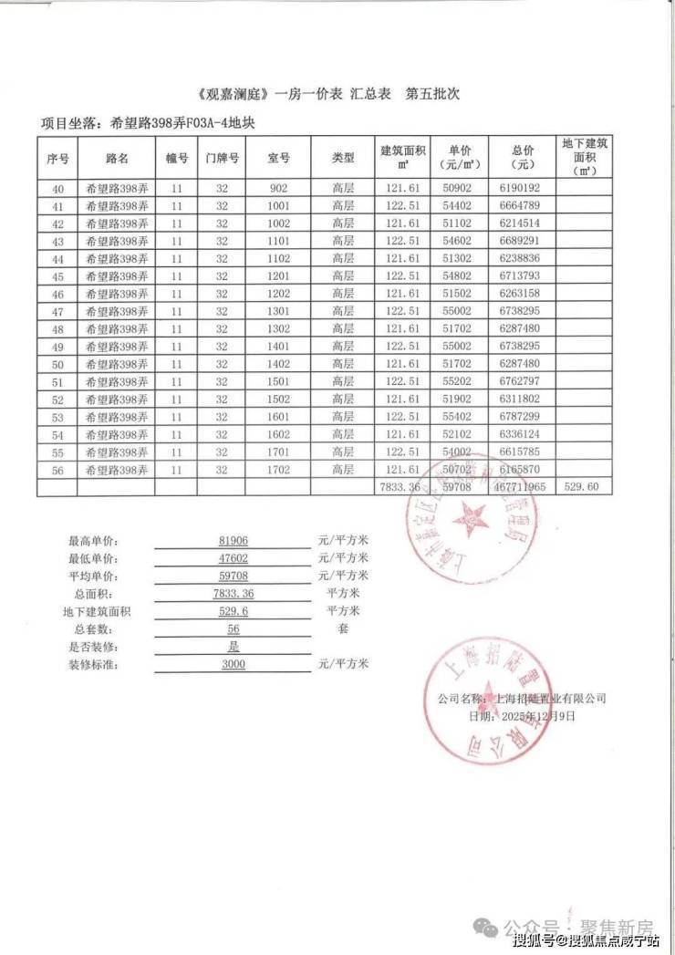 过会均价52279元/㎡