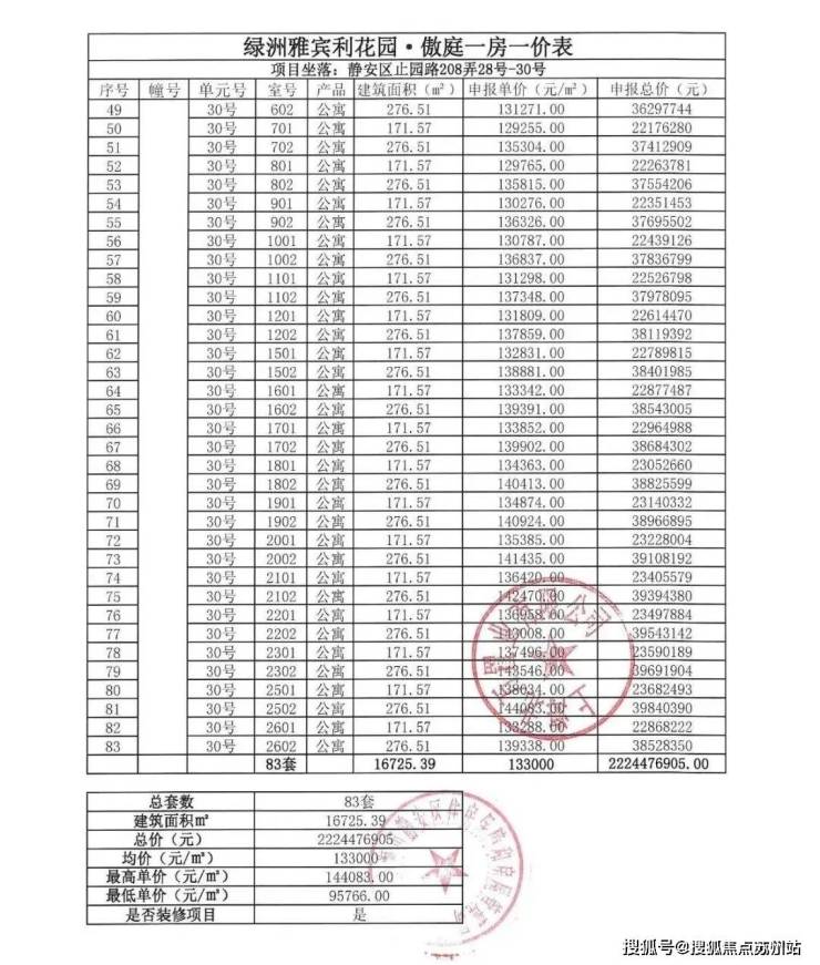 二期一房一价表