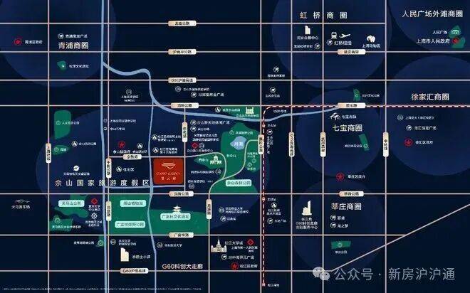 【交通配套】高速:沪渝高速、沪昆高速、上海绕城高速地铁:9号线(佘山站)机场:虹桥枢纽其他:有轨电车T5(规划)、佘山汽车站【商业配套】旭辉里商业广场、印象城、万达广场【教育资源】常青藤双语幼儿园、励滕伯克曼国际学院、阿德科特国际学校、领科双语学校(规划)、佘山外国语实验学校、松江大学城(温馨提醒:本案为商业性质,仅提供周边学校信息,非对口学校配套)